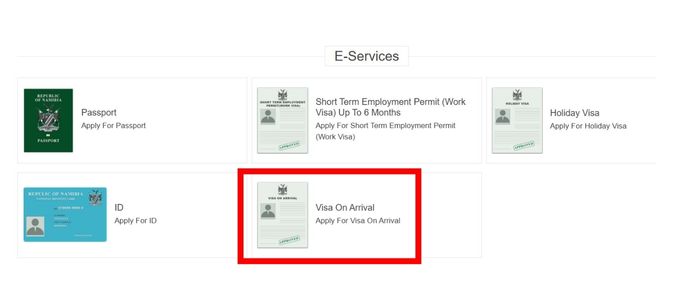 Once logged in, select the Visa on Arrival option from the E-Services menu.